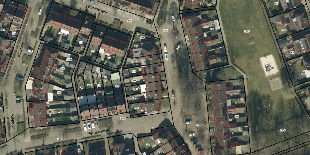 Het adres is gelegen op perceel 519 in de sectie G en de kadastrale gemeente Hoogeloon. De kadastrale aanduiding is aldus HGL04-G-519. Het perceel is 154 m² groot. Dat is kleiner dan de gemiddelde perceeloppervlakte in Hoogeloon, dat op 5387,29 m² ligt. Het grootste perceel in de kadastrale gemeente is 4,36 km². Het kleinste perceel heeft een oppervlakte van 0 m². Op het perceel bevinden zich geen andere adressen. In de Basisregistratie Kadaster (BRK) werden de grenzen van het perceel geregistreerd op 02-06-2005.