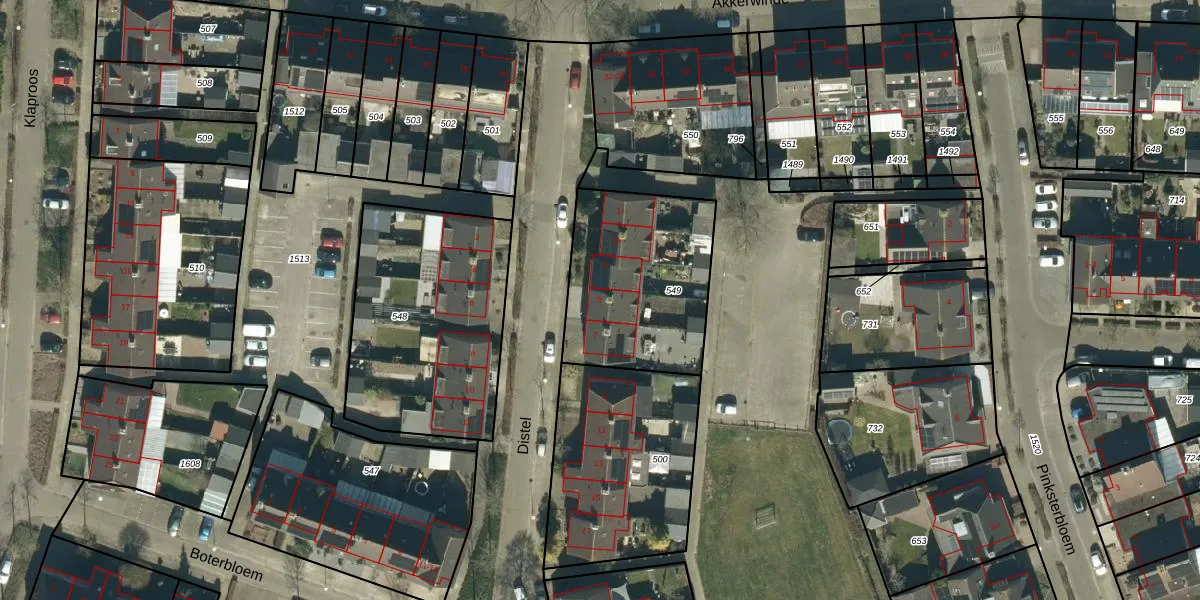 Het perceel waarop Distel 5 staat heeft een oppervlakte van 681 m². Dit is een groot perceel. De perceeloppervlakte wordt geregistreerd door het Kadaster. Gedetailleerde informatie over de maten van dit perceel kunt u vinden in het rapport Kadastrale kaart met maatvoering van Distel 5.