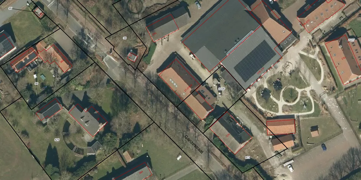 Het perceel waarop Ganzestraat 27-K-5 staat heeft een oppervlakte van 2,4 ha. Dit is een zeer groot perceel. De perceeloppervlakte wordt geregistreerd door het Kadaster. Gedetailleerde informatie over de maten van dit perceel kunt u vinden in het rapport Kadastrale kaart met maatvoering van Ganzestraat 27-K-5.
