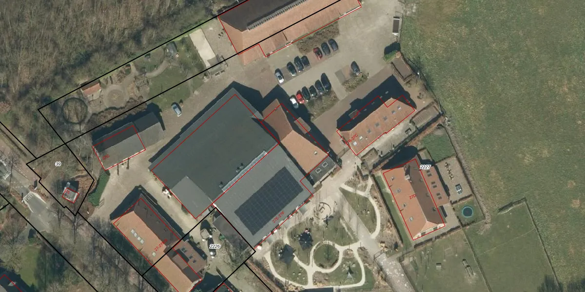 Het perceel waarop Ganzestraat 27-F staat heeft een oppervlakte van 2,4 ha. Dit is een zeer groot perceel. De perceeloppervlakte wordt geregistreerd door het Kadaster. Gedetailleerde informatie over de maten van dit perceel kunt u vinden in het rapport Kadastrale kaart met maatvoering van Ganzestraat 27-F.