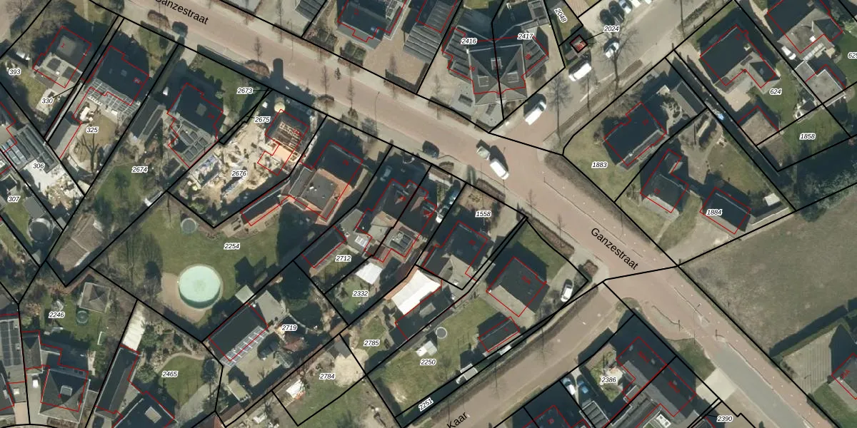 Het perceel waarop Ganzestraat 28-A staat heeft een oppervlakte van 380 m². Dit is een groot perceel. De perceeloppervlakte wordt geregistreerd door het Kadaster. Gedetailleerde informatie over de maten van dit perceel kunt u vinden in het rapport Kadastrale kaart met maatvoering van Ganzestraat 28-A.