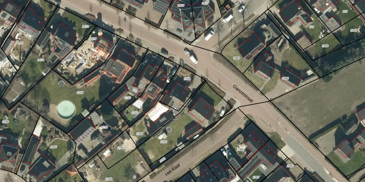 Gebruik de zoekbalk of klik op een perceel voor informatie over de adressen binnen dit perceel.