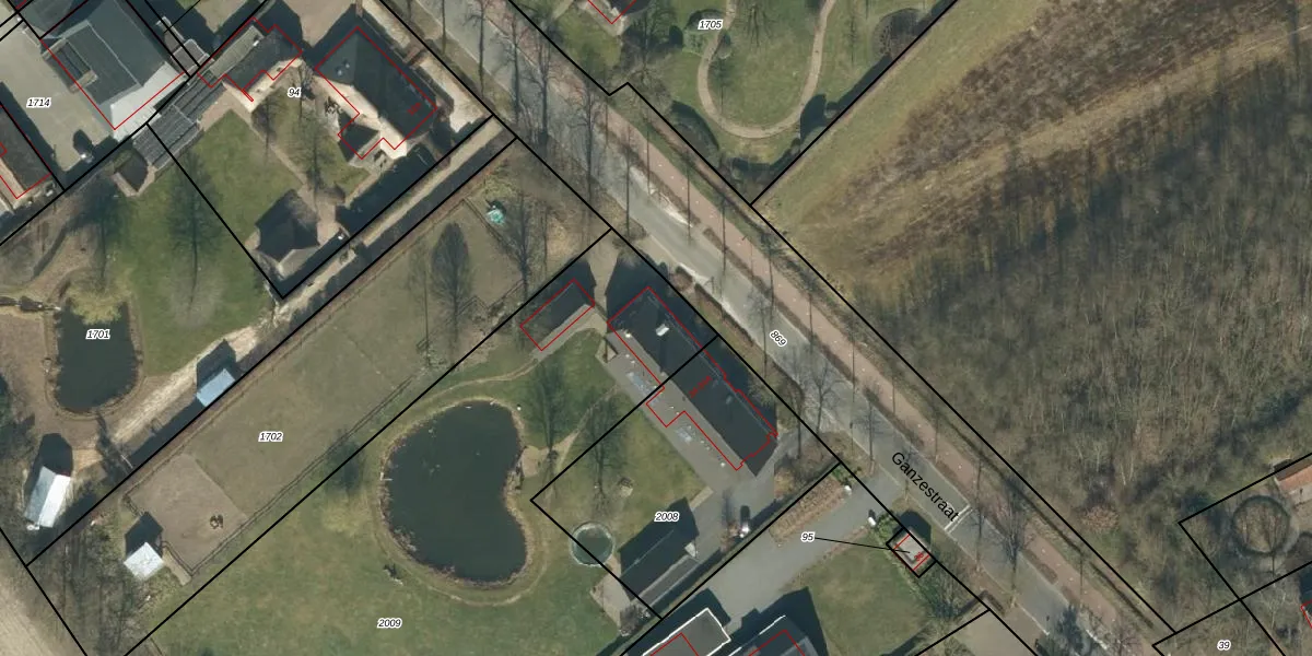 Het perceel waarop Ganzestraat 34 staat heeft een oppervlakte van 4405 m². Dit is een zeer groot perceel. De perceeloppervlakte wordt geregistreerd door het Kadaster. Gedetailleerde informatie over de maten van dit perceel kunt u vinden in het rapport Kadastrale kaart met maatvoering van Ganzestraat 34.
