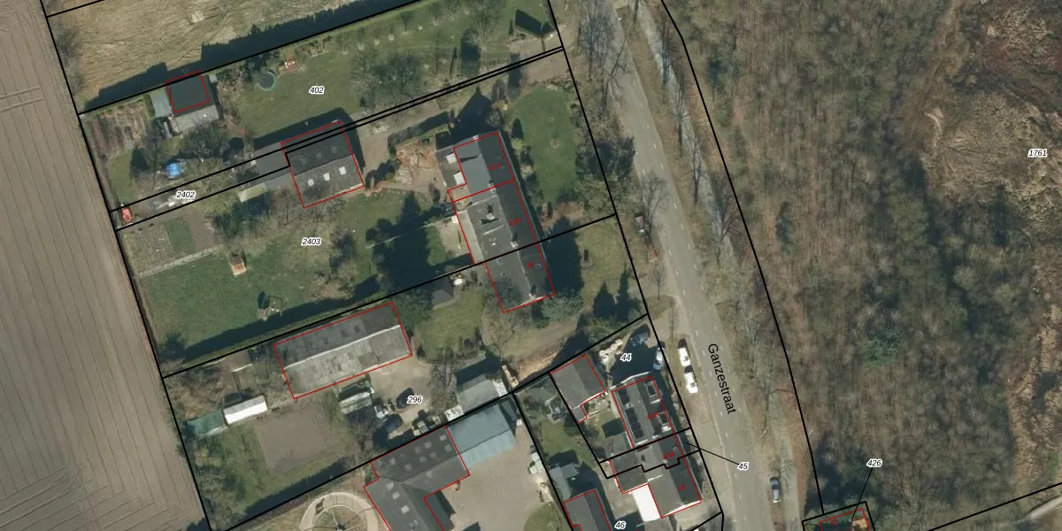 Het perceel waarop Ganzestraat 44 staat heeft een oppervlakte van 2400 m². Dit is een zeer groot perceel. De perceeloppervlakte wordt geregistreerd door het Kadaster. Gedetailleerde informatie over de maten van dit perceel kunt u vinden in het rapport Kadastrale kaart met maatvoering van Ganzestraat 44.