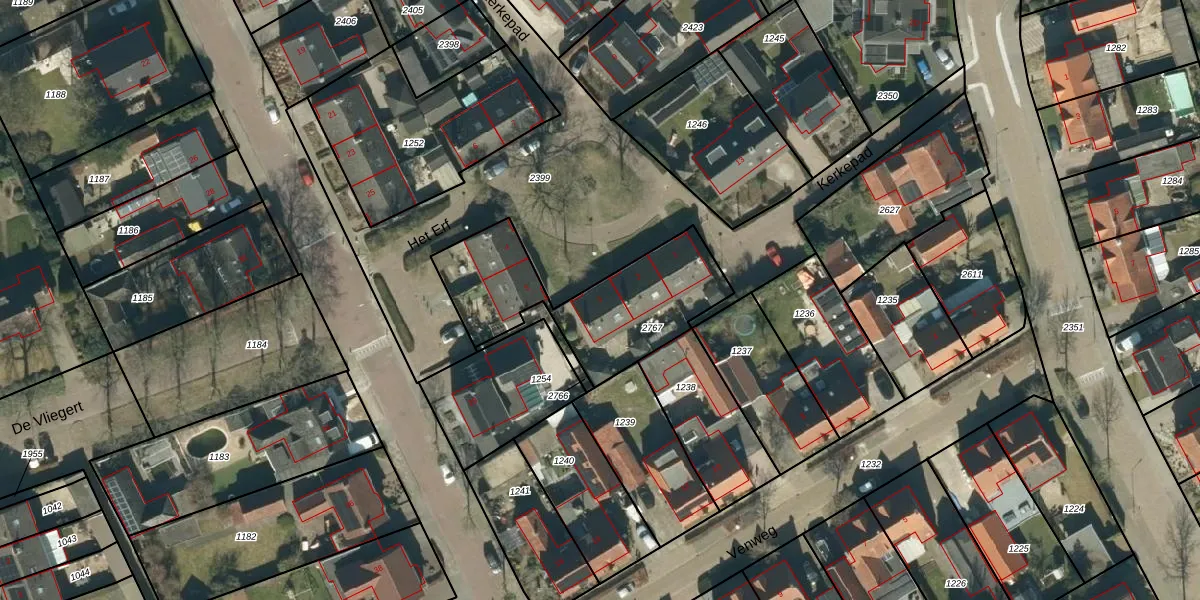 Het perceel waarop Het Erf 3 staat heeft een oppervlakte van 639 m². Dit is een groot perceel. De perceeloppervlakte wordt geregistreerd door het Kadaster. Gedetailleerde informatie over de maten van dit perceel kunt u vinden in het rapport Kadastrale kaart met maatvoering van Het Erf 3.