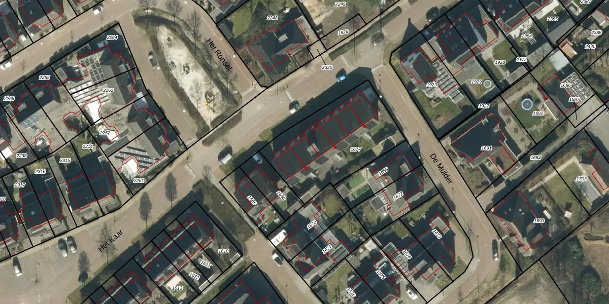 Het perceel waarop Het Kaar 12-A staat heeft een oppervlakte van 959 m². Dit is een groot perceel. De perceeloppervlakte wordt geregistreerd door het Kadaster. Gedetailleerde informatie over de maten van dit perceel kunt u vinden in het rapport Kadastrale kaart met maatvoering van Het Kaar 12-A.