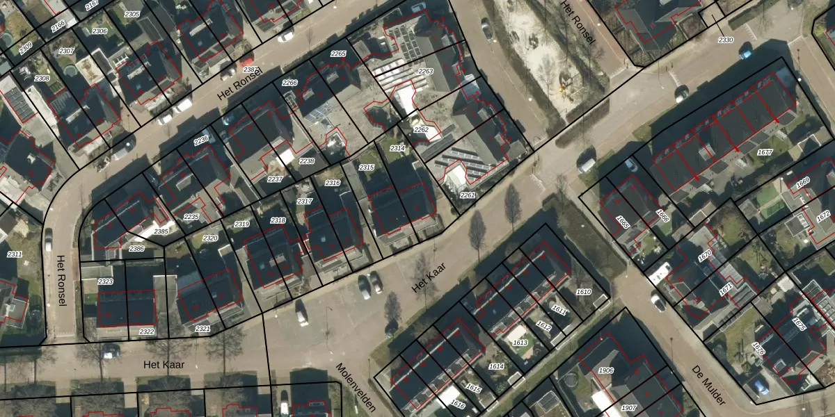 Gebruik de zoekbalk of klik op een perceel voor informatie over de adressen binnen dit perceel.