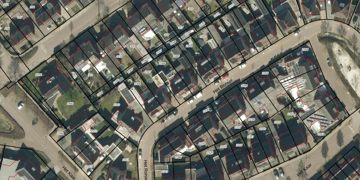 Het perceel waarop Het Ronsel 26 staat heeft een oppervlakte van 261 m². Dit is een middelgroot perceel. De perceeloppervlakte wordt geregistreerd door het Kadaster. Gedetailleerde informatie over de maten van dit perceel kunt u vinden in het rapport Kadastrale kaart met maatvoering van Het Ronsel 26.