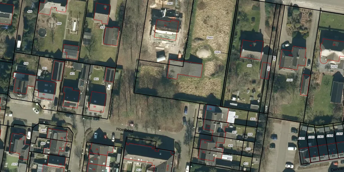 Hoefblad 36-B is gelegen op kadastraal perceel HGL04G2444. Deze kadastrale aanduiding is uniek en wordt gebruikt door het Kadaster om eigendomsrechten en andere zakelijke rechten vast te leggen. Het perceel maakt onderdeel uit van de kadastrale gemeente Hoogeloon.