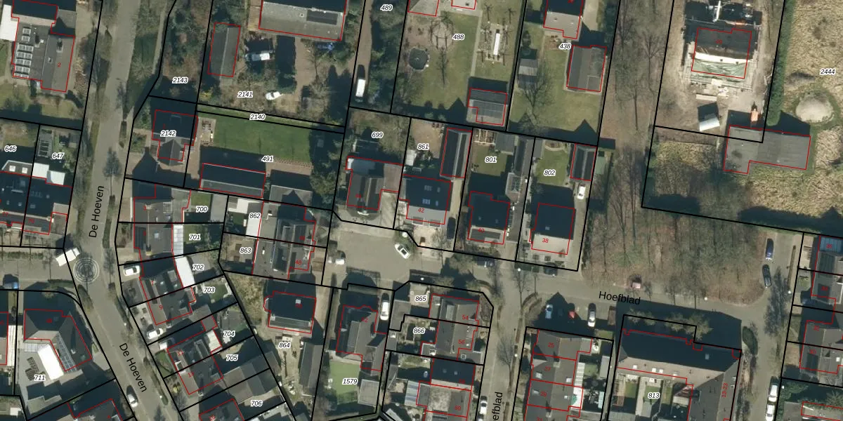 Het perceel waarop Hoefblad 42 staat heeft een oppervlakte van 434 m². Dit is een groot perceel. De perceeloppervlakte wordt geregistreerd door het Kadaster. Gedetailleerde informatie over de maten van dit perceel kunt u vinden in het rapport Kadastrale kaart met maatvoering van Hoefblad 42.