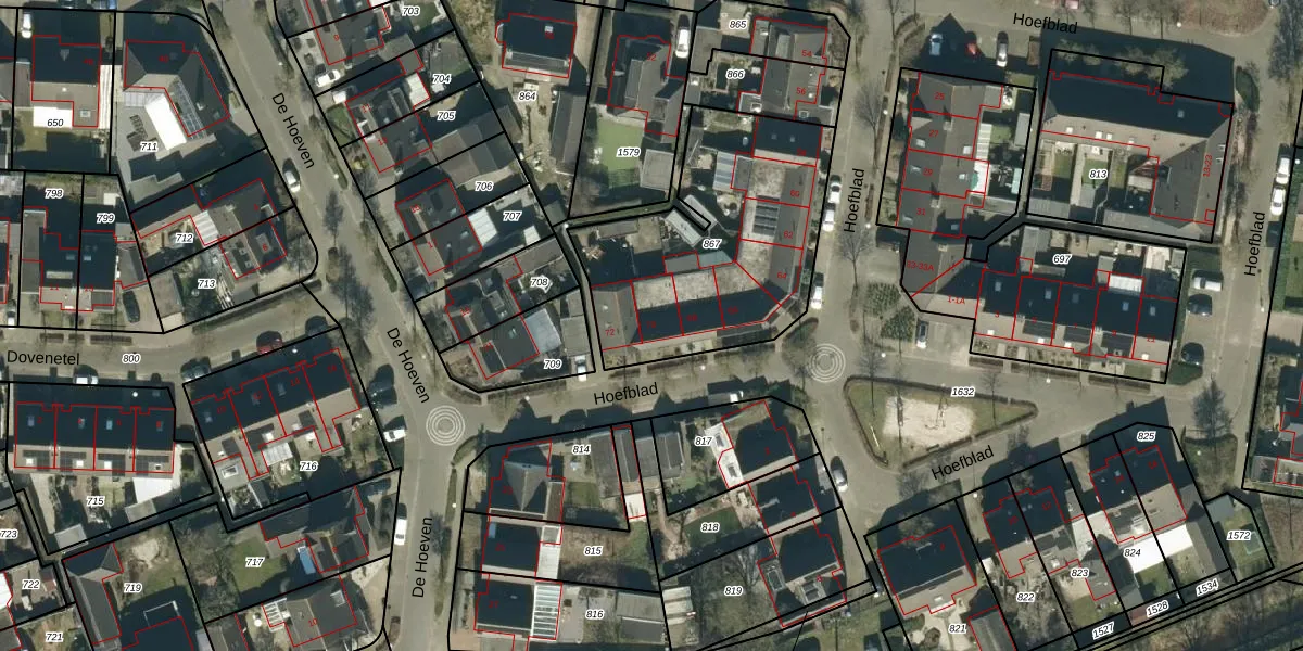 Het perceel waarop Hoefblad 70 staat heeft een oppervlakte van 1045 m². Dit is een zeer groot perceel. De perceeloppervlakte wordt geregistreerd door het Kadaster. Gedetailleerde informatie over de maten van dit perceel kunt u vinden in het rapport Kadastrale kaart met maatvoering van Hoefblad 70.