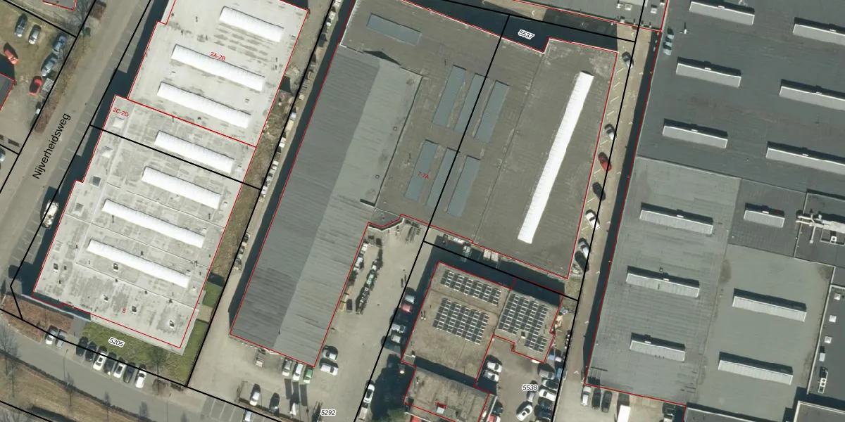 Het perceel waarop Industrieweg 7-A staat heeft een oppervlakte van 4280 m². Dit is een zeer groot perceel. De perceeloppervlakte wordt geregistreerd door het Kadaster. Gedetailleerde informatie over de maten van dit perceel kunt u vinden in het rapport Kadastrale kaart met maatvoering van Industrieweg 7-A.