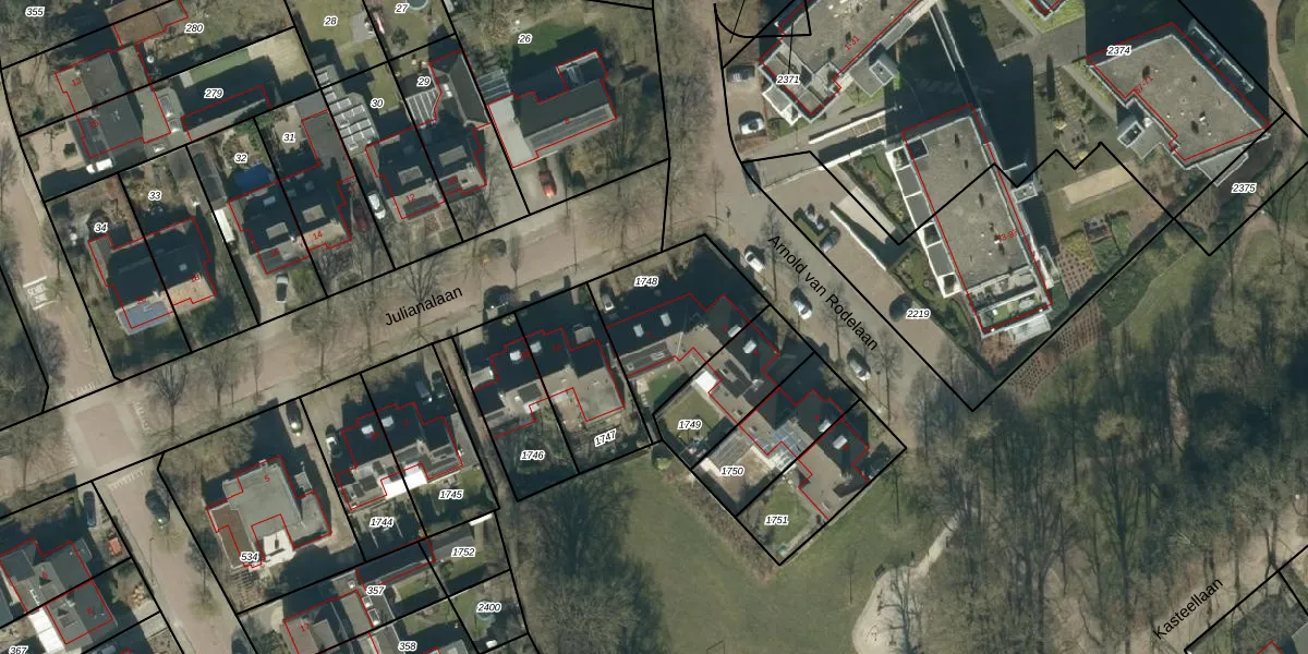 Het perceel waarop Julianalaan 1 staat heeft een oppervlakte van 432 m². Dit is een groot perceel. De perceeloppervlakte wordt geregistreerd door het Kadaster. Gedetailleerde informatie over de maten van dit perceel kunt u vinden in het rapport Kadastrale kaart met maatvoering van Julianalaan 1.