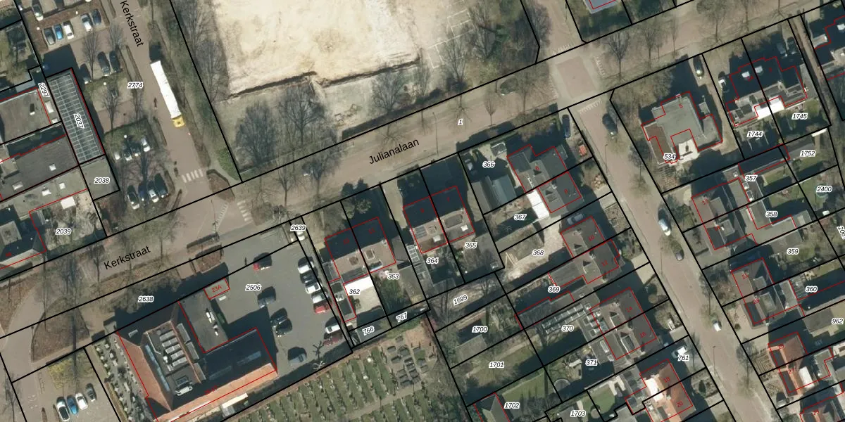 Julianalaan 9 is gelegen op kadastraal perceel HGL04F364. Deze kadastrale aanduiding is uniek en wordt gebruikt door het Kadaster om eigendomsrechten en andere zakelijke rechten vast te leggen. Het perceel maakt onderdeel uit van de kadastrale gemeente Hoogeloon.
