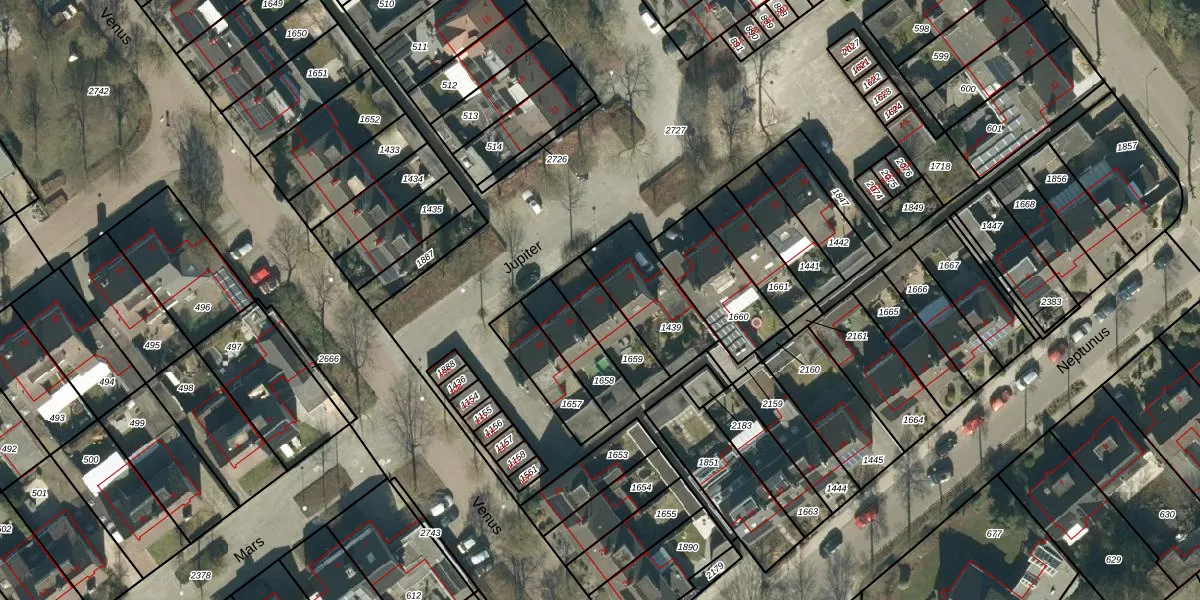 Het perceel waarop Jupiter 36 staat heeft een oppervlakte van 154 m². Dit is een middelgroot perceel. De perceeloppervlakte wordt geregistreerd door het Kadaster. Gedetailleerde informatie over de maten van dit perceel kunt u vinden in het rapport Kadastrale kaart met maatvoering van Jupiter 36.