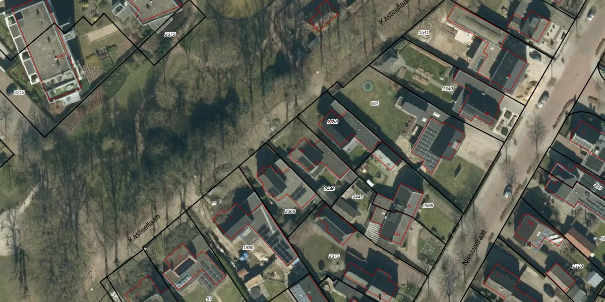 Het perceel waarop Kasteellaan 10 staat heeft een oppervlakte van 401 m². Dit is een groot perceel. De perceeloppervlakte wordt geregistreerd door het Kadaster. Gedetailleerde informatie over de maten van dit perceel kunt u vinden in het rapport Kadastrale kaart met maatvoering van Kasteellaan 10.
