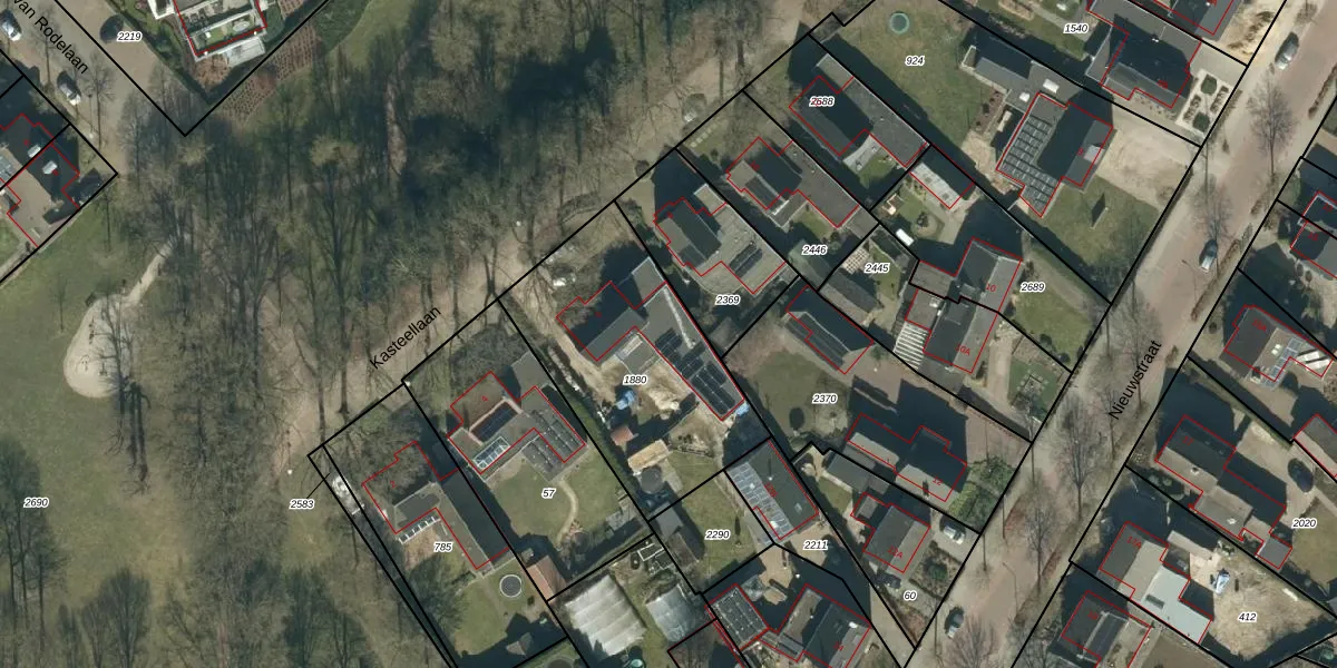 Het perceel waarop Kasteellaan 6 staat heeft een oppervlakte van 940 m². Dit is een groot perceel. De perceeloppervlakte wordt geregistreerd door het Kadaster. Gedetailleerde informatie over de maten van dit perceel kunt u vinden in het rapport Kadastrale kaart met maatvoering van Kasteellaan 6.