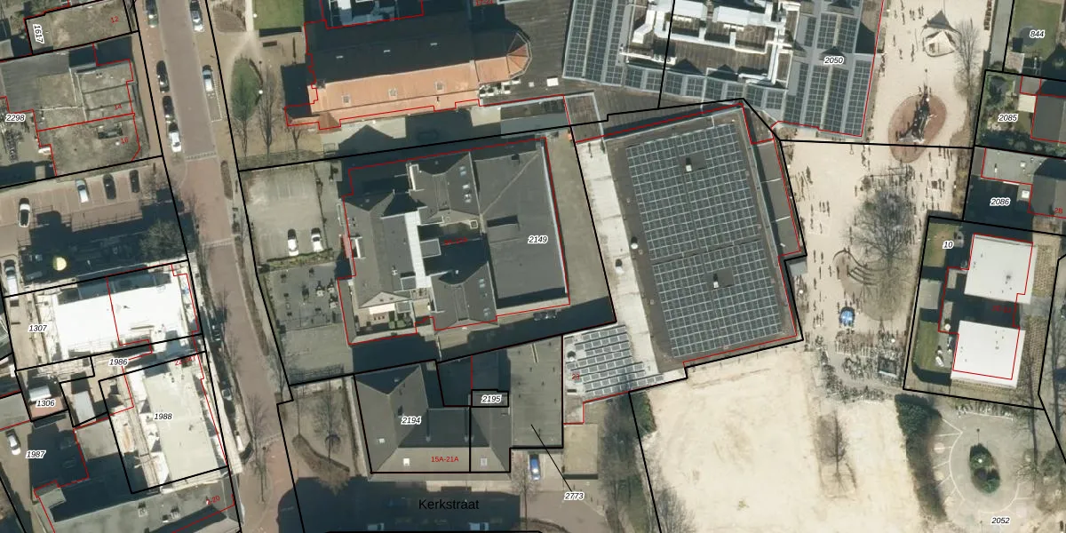 Het perceel waarop Kerkstraat 13 staat heeft een oppervlakte van 2512 m². Dit is een zeer groot perceel. De perceeloppervlakte wordt geregistreerd door het Kadaster. Gedetailleerde informatie over de maten van dit perceel kunt u vinden in het rapport Kadastrale kaart met maatvoering van Kerkstraat 13.