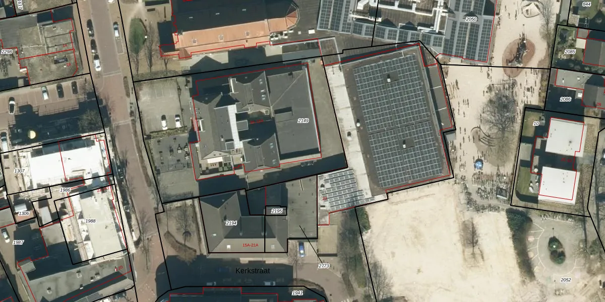Het perceel waarop Kerkstraat 13-A staat heeft een oppervlakte van 2512 m². Dit is een zeer groot perceel. De perceeloppervlakte wordt geregistreerd door het Kadaster. Gedetailleerde informatie over de maten van dit perceel kunt u vinden in het rapport Kadastrale kaart met maatvoering van Kerkstraat 13-A.