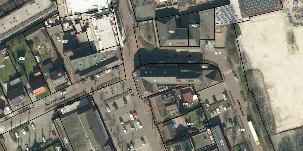 Het perceel waarop Kerkstraat 34 staat heeft een oppervlakte van 969 m². Dit is een groot perceel. De perceeloppervlakte wordt geregistreerd door het Kadaster. Gedetailleerde informatie over de maten van dit perceel kunt u vinden in het rapport Kadastrale kaart met maatvoering van Kerkstraat 34.