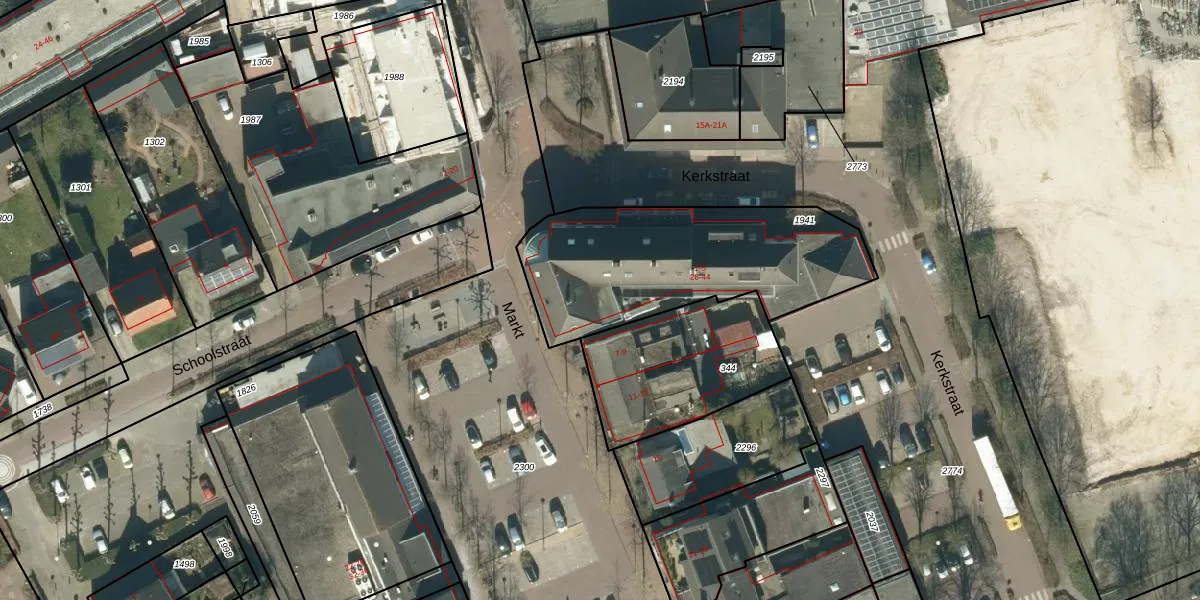 Het perceel waarop Kerkstraat 36 staat heeft een oppervlakte van 969 m². Dit is een groot perceel. De perceeloppervlakte wordt geregistreerd door het Kadaster. Gedetailleerde informatie over de maten van dit perceel kunt u vinden in het rapport Kadastrale kaart met maatvoering van Kerkstraat 36.
