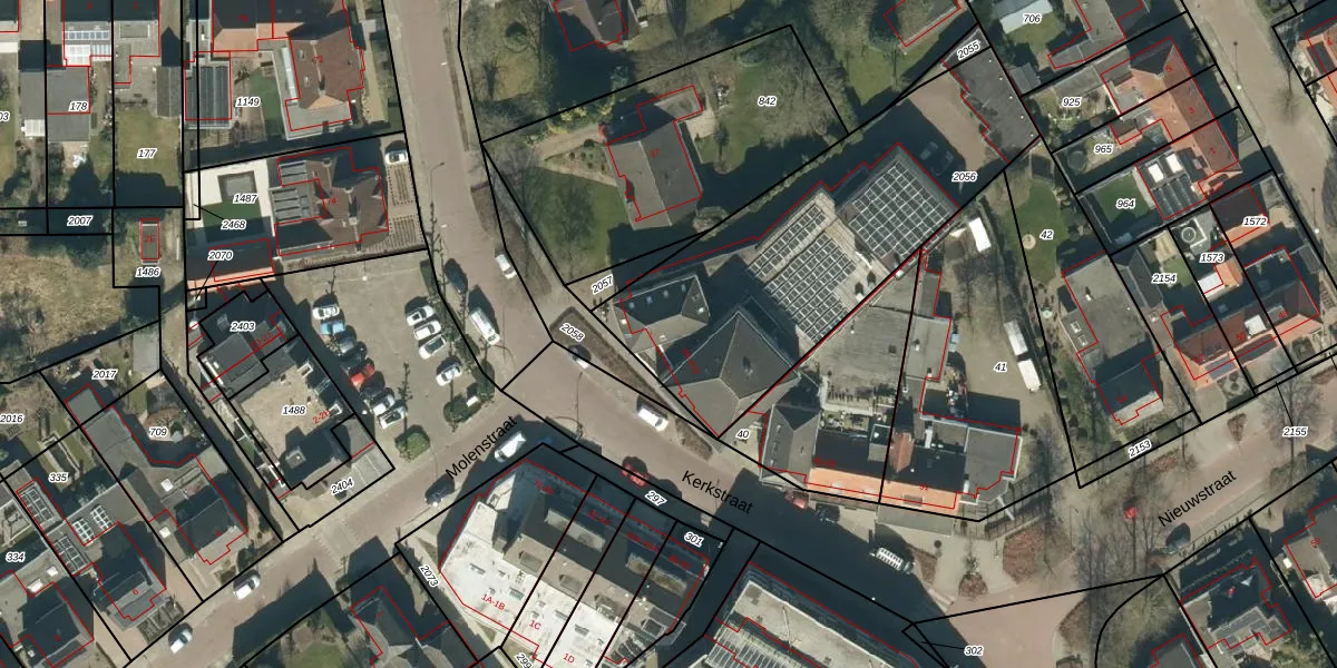Het perceel waarop Kerkstraat 39-A staat heeft een oppervlakte van 1475 m². Dit is een zeer groot perceel. De perceeloppervlakte wordt geregistreerd door het Kadaster. Gedetailleerde informatie over de maten van dit perceel kunt u vinden in het rapport Kadastrale kaart met maatvoering van Kerkstraat 39-A.
