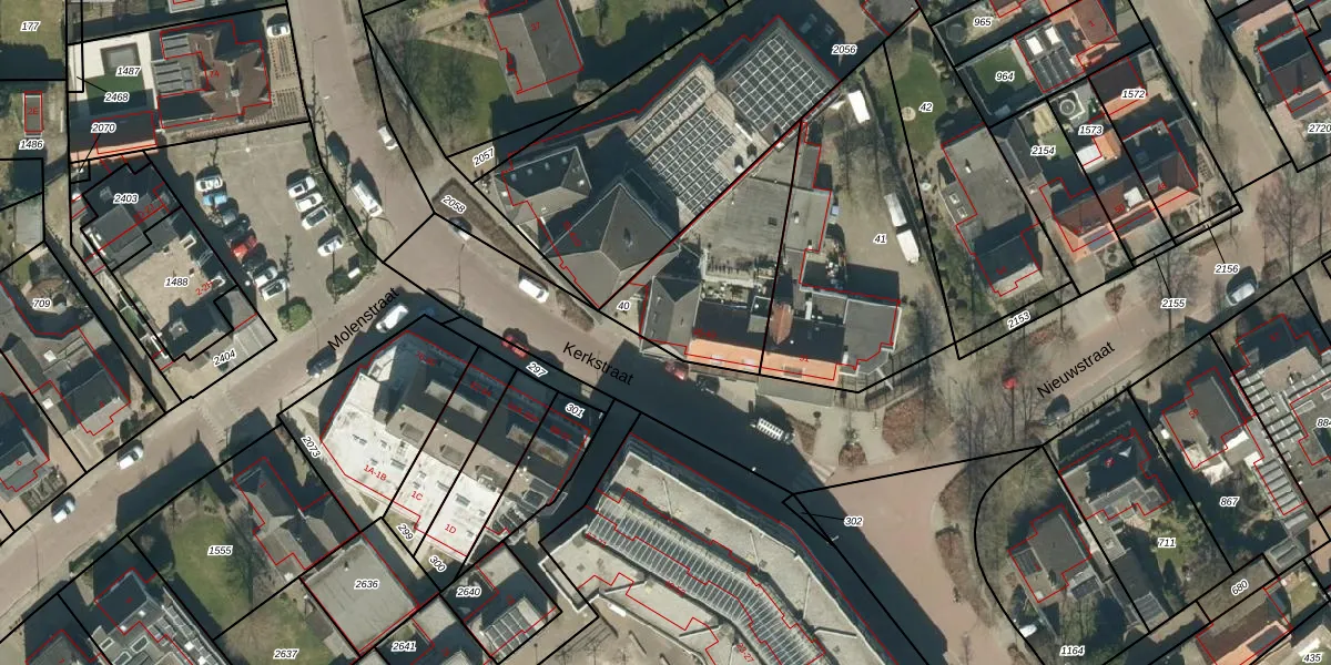 Het perceel waarop Kerkstraat 45 staat heeft een oppervlakte van 533 m². Dit is een groot perceel. De perceeloppervlakte wordt geregistreerd door het Kadaster. Gedetailleerde informatie over de maten van dit perceel kunt u vinden in het rapport Kadastrale kaart met maatvoering van Kerkstraat 45.