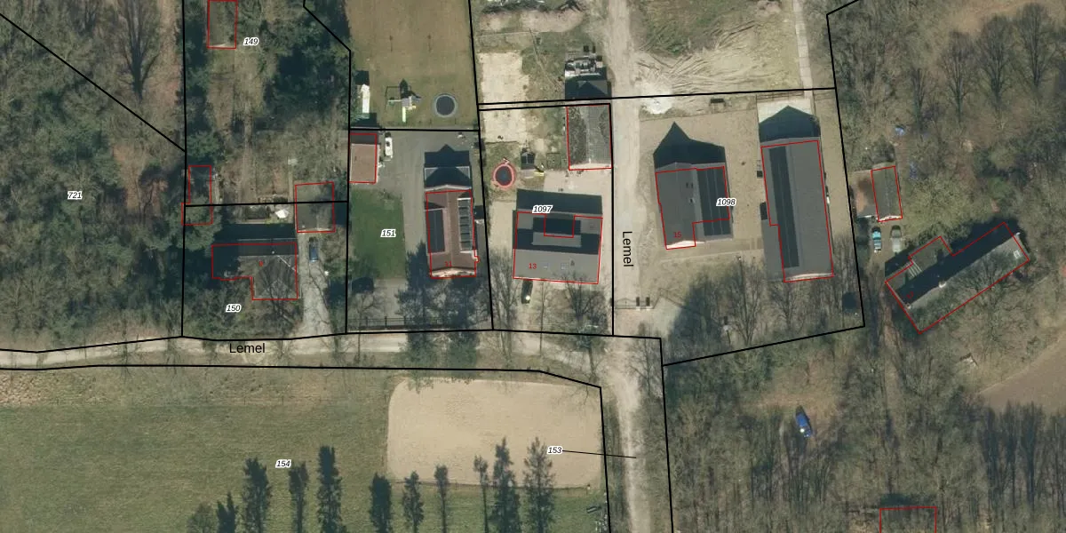 Het perceel waarop Lemel 13 staat heeft een oppervlakte van 1010 m². Dit is een zeer groot perceel. De perceeloppervlakte wordt geregistreerd door het Kadaster. Gedetailleerde informatie over de maten van dit perceel kunt u vinden in het rapport Kadastrale kaart met maatvoering van Lemel 13.
