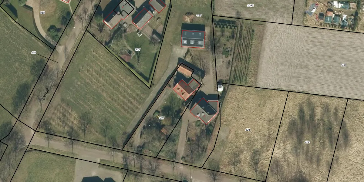 Het perceel waarop Lemel 5 staat heeft een oppervlakte van 892 m². Dit is een groot perceel. De perceeloppervlakte wordt geregistreerd door het Kadaster. Gedetailleerde informatie over de maten van dit perceel kunt u vinden in het rapport Kadastrale kaart met maatvoering van Lemel 5.