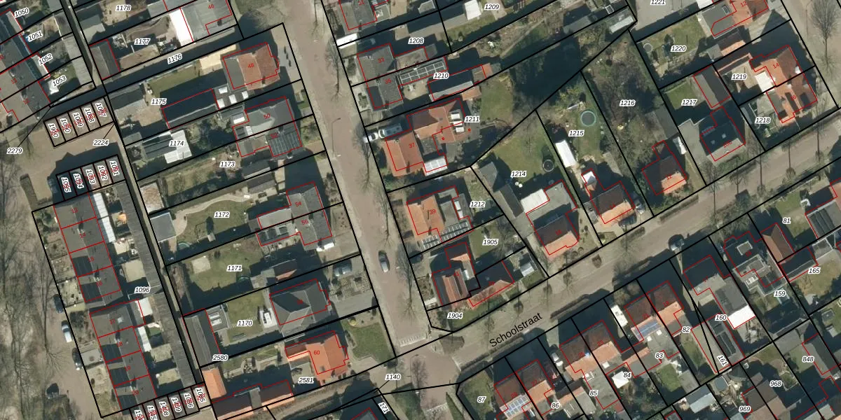Het adres is gelegen op perceel 1212 in de sectie F en de kadastrale gemeente Hoogeloon. De kadastrale aanduiding is aldus HGL04-F-1212. Het perceel is kleiner dan gemiddeld in Hoogeloon. Het perceel is 350 m² groot, terwijl het gemiddelde ligt op 5387,29 m². Het kleinste perceel in de kadastrale gemeente is 0 m² groot. De grootste perceeloppervlakte is 4,36 km². Er zijn geen andere adressen aanwezig op het perceel. De huidige grenzen van het perceel zijn digitaal in de Basisregistratie Kadaster (BRK) geregistreerd op 07-06-2005.