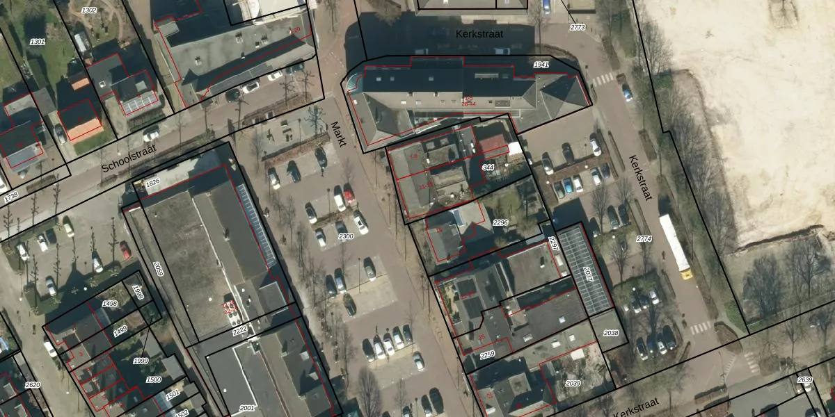 Het perceel waarop Markt 13 staat heeft een oppervlakte van 568 m². Dit is een groot perceel. De perceeloppervlakte wordt geregistreerd door het Kadaster. Gedetailleerde informatie over de maten van dit perceel kunt u vinden in het rapport Kadastrale kaart met maatvoering van Markt 13.