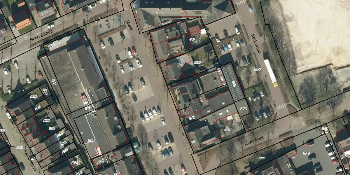 Het perceel waarop Markt 21 staat heeft een oppervlakte van 428 m². Dit is een groot perceel. De perceeloppervlakte wordt geregistreerd door het Kadaster. Gedetailleerde informatie over de maten van dit perceel kunt u vinden in het rapport Kadastrale kaart met maatvoering van Markt 21.
