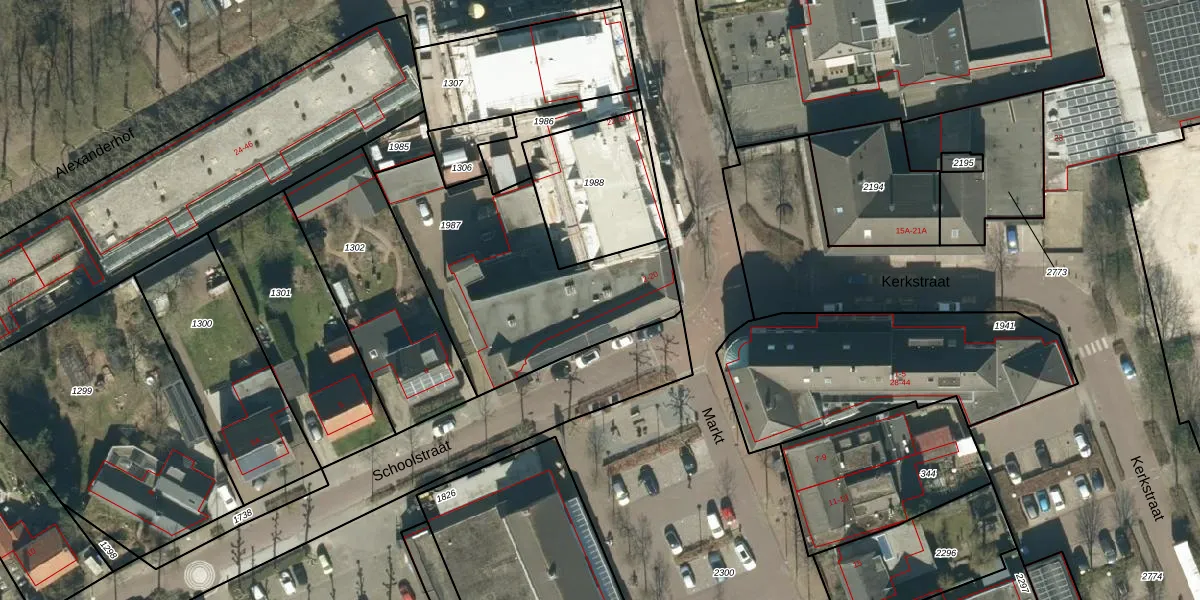 Het perceel waarop Markt 6 staat heeft een oppervlakte van 983 m². Dit is een groot perceel. De perceeloppervlakte wordt geregistreerd door het Kadaster. Gedetailleerde informatie over de maten van dit perceel kunt u vinden in het rapport Kadastrale kaart met maatvoering van Markt 6.