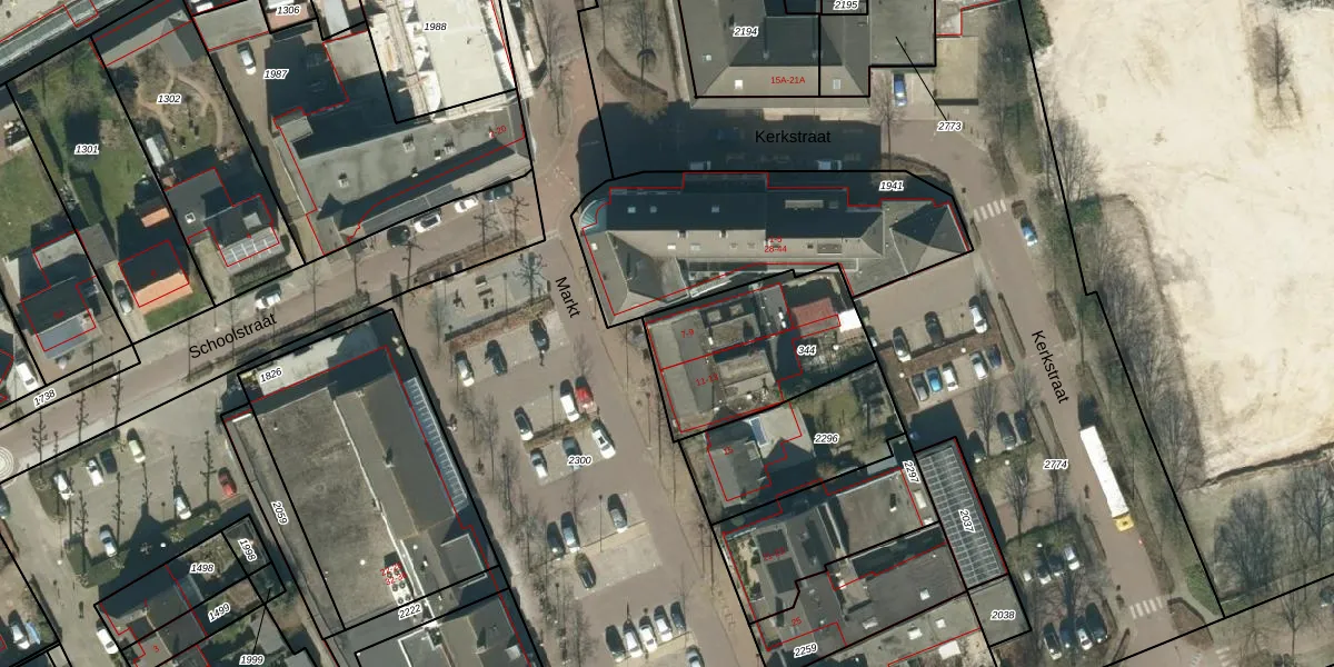 Het perceel waarop Markt 7 staat heeft een oppervlakte van 568 m². Dit is een groot perceel. De perceeloppervlakte wordt geregistreerd door het Kadaster. Gedetailleerde informatie over de maten van dit perceel kunt u vinden in het rapport Kadastrale kaart met maatvoering van Markt 7.