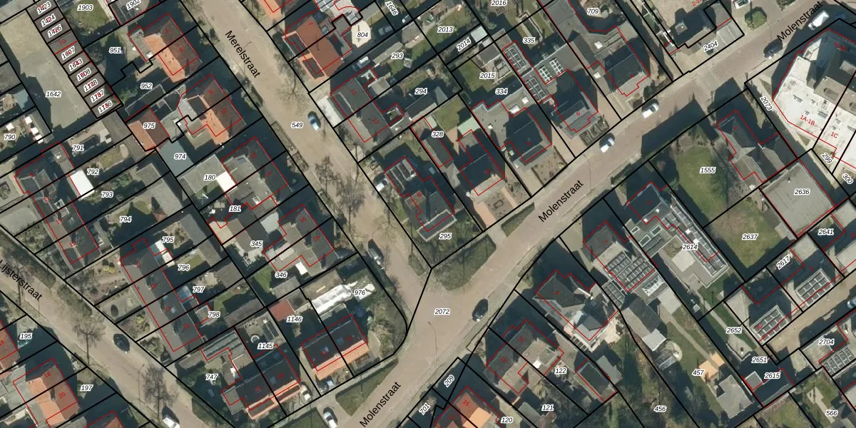 Gebruik de zoekbalk of klik op een perceel voor informatie over de adressen binnen dit perceel.