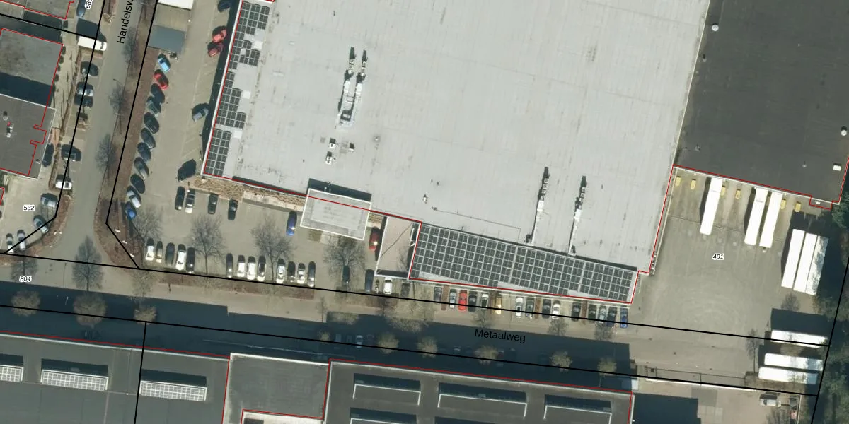 Het perceel waarop Metaalweg 15 staat heeft een oppervlakte van 3,0 ha. Dit is een zeer groot perceel. De perceeloppervlakte wordt geregistreerd door het Kadaster. Gedetailleerde informatie over de maten van dit perceel kunt u vinden in het rapport Kadastrale kaart met maatvoering van Metaalweg 15.