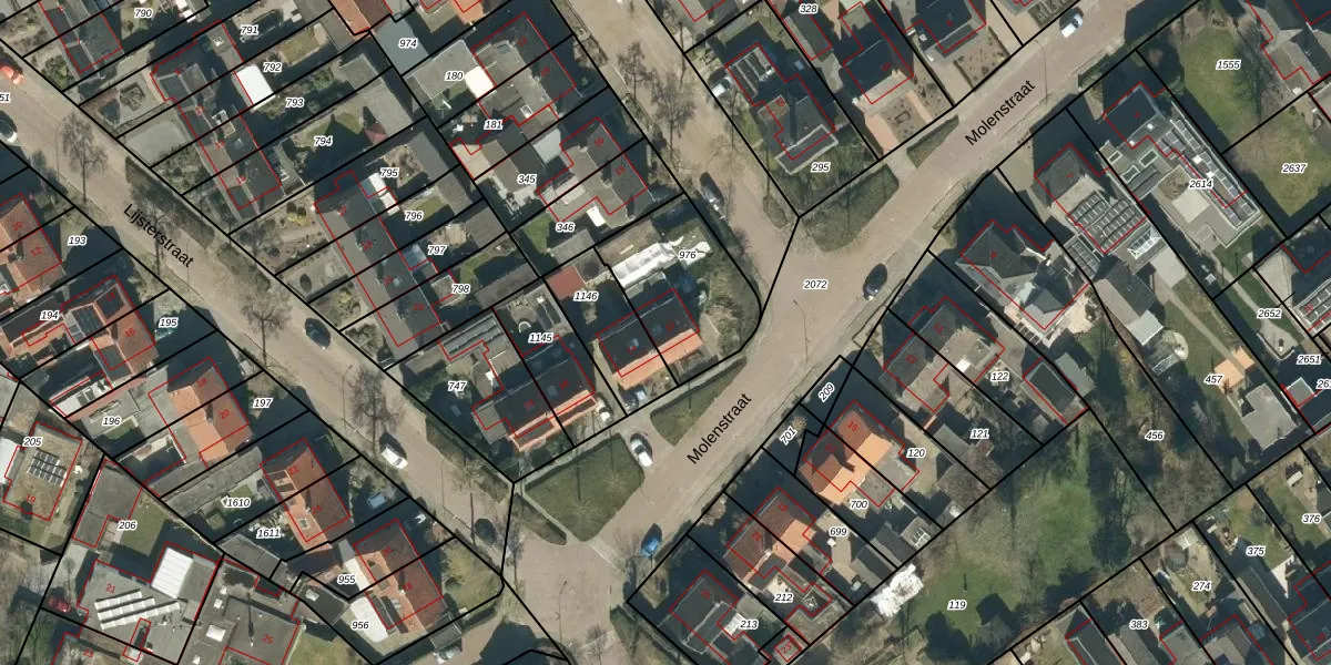 Het perceel waarop Molenstraat 12 staat heeft een oppervlakte van 390 m². Dit is een groot perceel. De perceeloppervlakte wordt geregistreerd door het Kadaster. Gedetailleerde informatie over de maten van dit perceel kunt u vinden in het rapport Kadastrale kaart met maatvoering van Molenstraat 12.