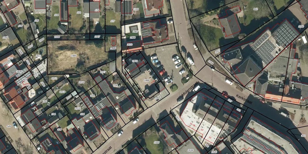 Molenstraat 2-G is gelegen op kadastraal perceel HGL04F1488. Deze kadastrale aanduiding is uniek en wordt gebruikt door het Kadaster om eigendomsrechten en andere zakelijke rechten vast te leggen. Het perceel maakt onderdeel uit van de kadastrale gemeente Hoogeloon.