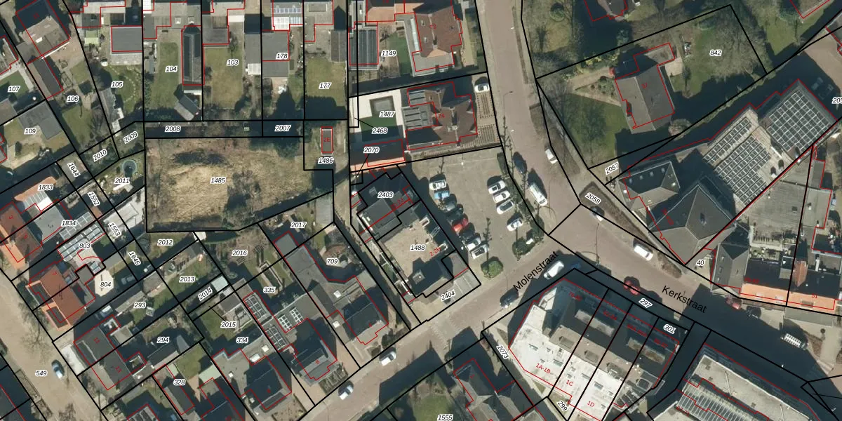 Molenstraat 2-H is gelegen op kadastraal perceel HGL04F1488. Deze kadastrale aanduiding is uniek en wordt gebruikt door het Kadaster om eigendomsrechten en andere zakelijke rechten vast te leggen. Het perceel maakt onderdeel uit van de kadastrale gemeente Hoogeloon.