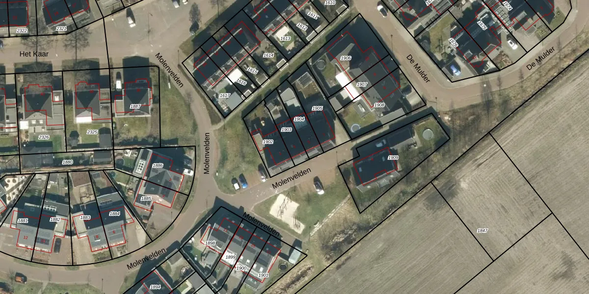 Het perceel waarop Molenvelden 3 staat heeft een oppervlakte van 140 m². Dit is een middelgroot perceel. De perceeloppervlakte wordt geregistreerd door het Kadaster. Gedetailleerde informatie over de maten van dit perceel kunt u vinden in het rapport Kadastrale kaart met maatvoering van Molenvelden 3.