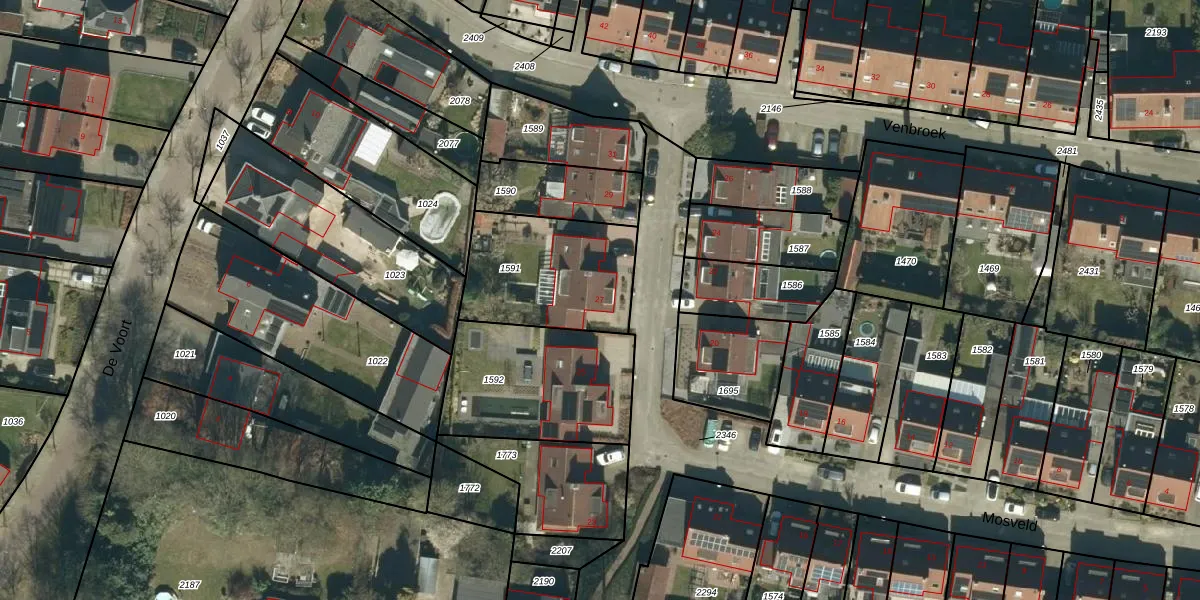 Het perceel waarop Mosveld 27 staat heeft een oppervlakte van 512 m². Dit is een groot perceel. De perceeloppervlakte wordt geregistreerd door het Kadaster. Gedetailleerde informatie over de maten van dit perceel kunt u vinden in het rapport Kadastrale kaart met maatvoering van Mosveld 27.
