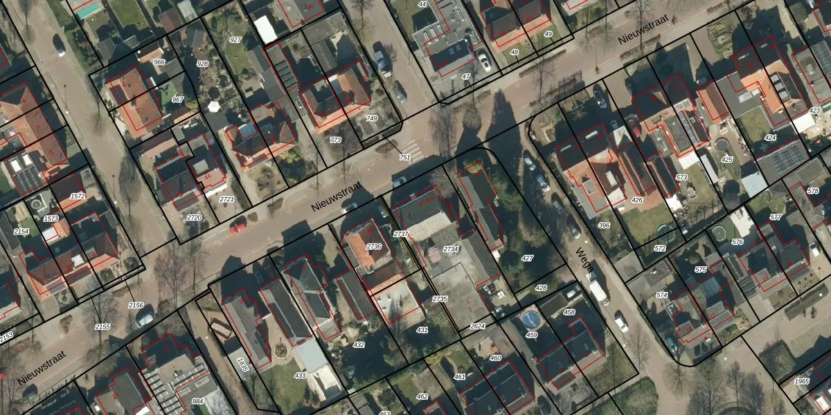 Het perceel waarop Nieuwstraat 47-A staat heeft een oppervlakte van 615 m². Dit is een groot perceel. De perceeloppervlakte wordt geregistreerd door het Kadaster. Gedetailleerde informatie over de maten van dit perceel kunt u vinden in het rapport Kadastrale kaart met maatvoering van Nieuwstraat 47-A.