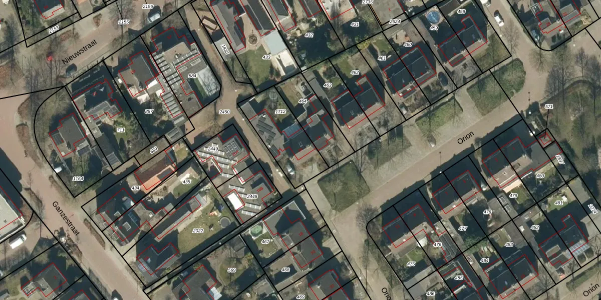 Het perceel waarop Orion 16 staat heeft een oppervlakte van 454 m². Dit is een groot perceel. De perceeloppervlakte wordt geregistreerd door het Kadaster. Gedetailleerde informatie over de maten van dit perceel kunt u vinden in het rapport Kadastrale kaart met maatvoering van Orion 16.