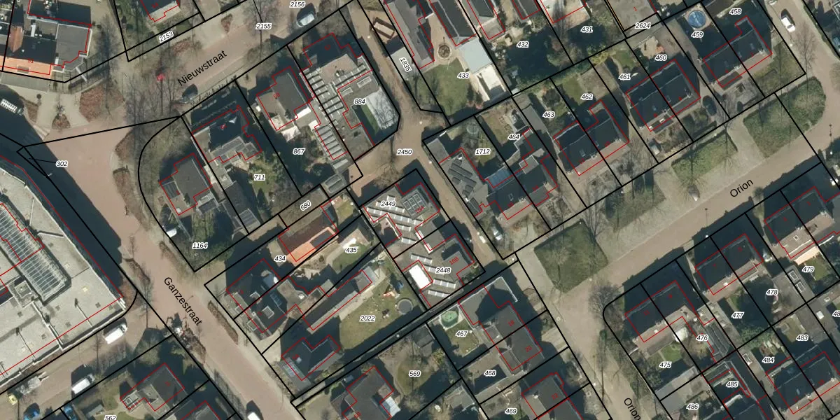 Gebruik de zoekbalk of klik op een perceel voor informatie over de adressen binnen dit perceel.