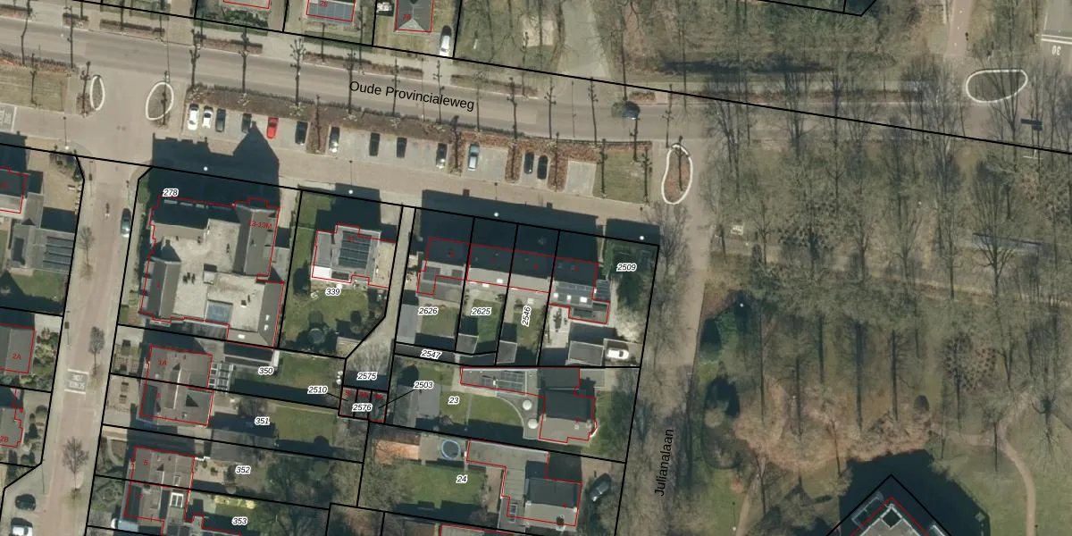 Gebruik de zoekbalk of klik op een perceel voor informatie over de adressen binnen dit perceel.