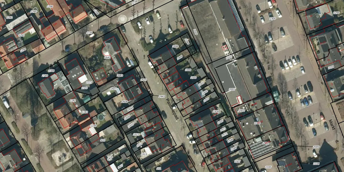 Pastoriepad 9 is gelegen op kadastraal perceel HGL04F1500. Deze kadastrale aanduiding is uniek en wordt gebruikt door het Kadaster om eigendomsrechten en andere zakelijke rechten vast te leggen. Het perceel maakt onderdeel uit van de kadastrale gemeente Hoogeloon.