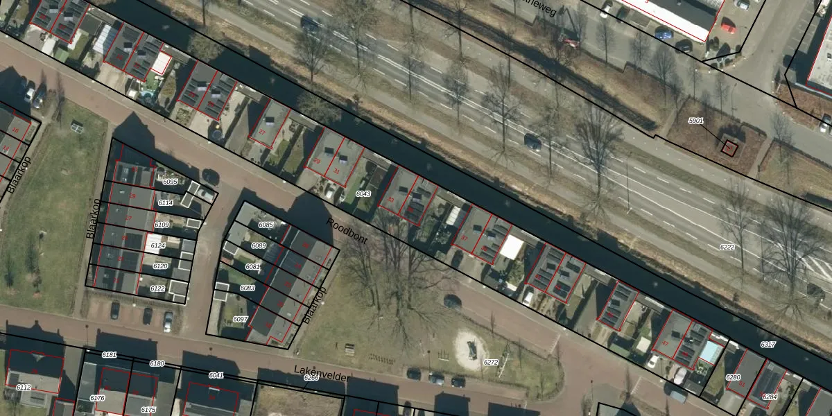 Het perceel waarop Roodbont 35 staat heeft een oppervlakte van 3098 m². Dit is een zeer groot perceel. De perceeloppervlakte wordt geregistreerd door het Kadaster. Gedetailleerde informatie over de maten van dit perceel kunt u vinden in het rapport Kadastrale kaart met maatvoering van Roodbont 35.