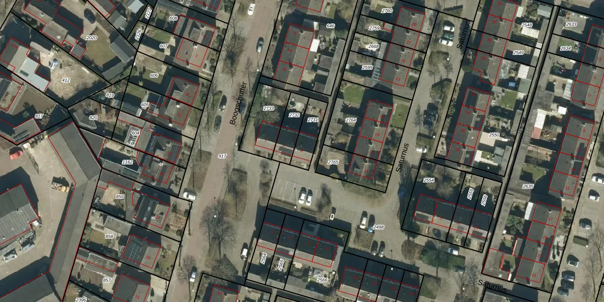 Gebruik de zoekbalk of klik op een perceel voor informatie over de adressen binnen dit perceel.