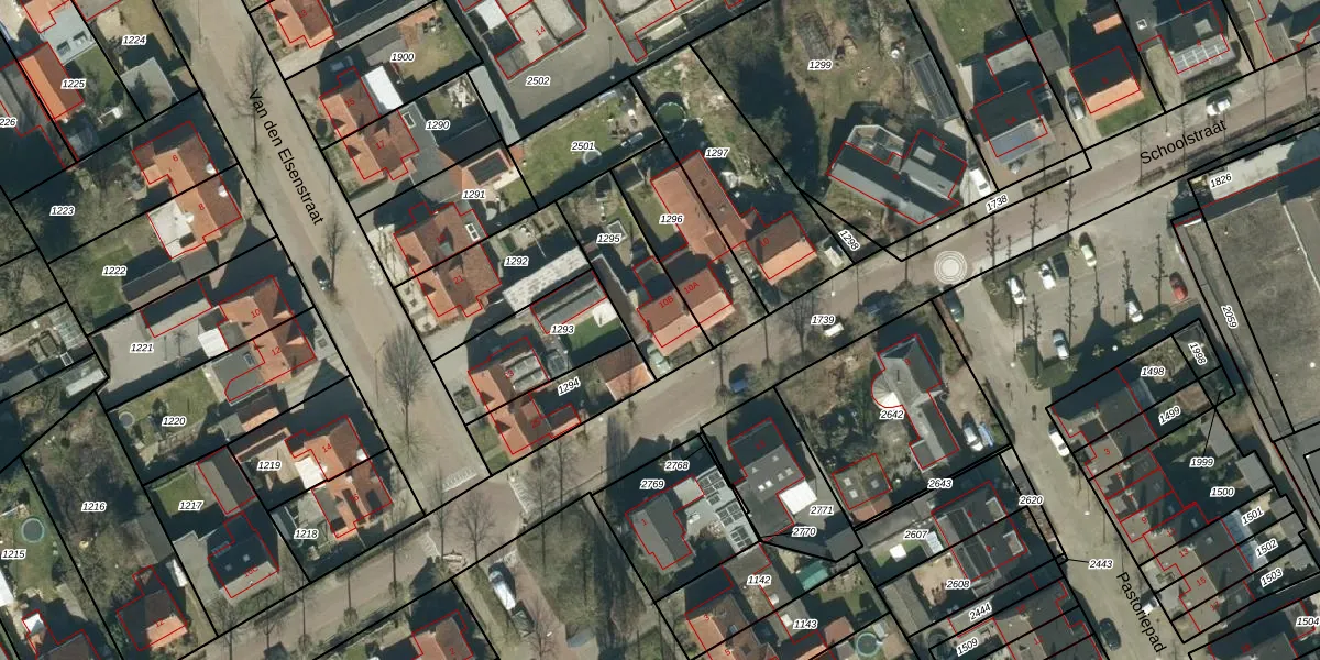 Schoolstraat 10-B is gelegen op kadastraal perceel HGL04F1295. Deze kadastrale aanduiding is uniek en wordt gebruikt door het Kadaster om eigendomsrechten en andere zakelijke rechten vast te leggen. Het perceel maakt onderdeel uit van de kadastrale gemeente Hoogeloon.
