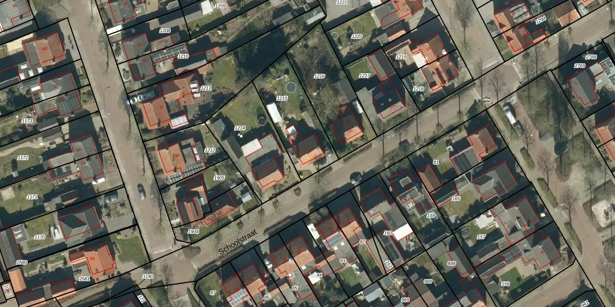 Schoolstraat 14 is gelegen op kadastraal perceel HGL04F1215. Deze kadastrale aanduiding is uniek en wordt gebruikt door het Kadaster om eigendomsrechten en andere zakelijke rechten vast te leggen. Het perceel maakt onderdeel uit van de kadastrale gemeente Hoogeloon.